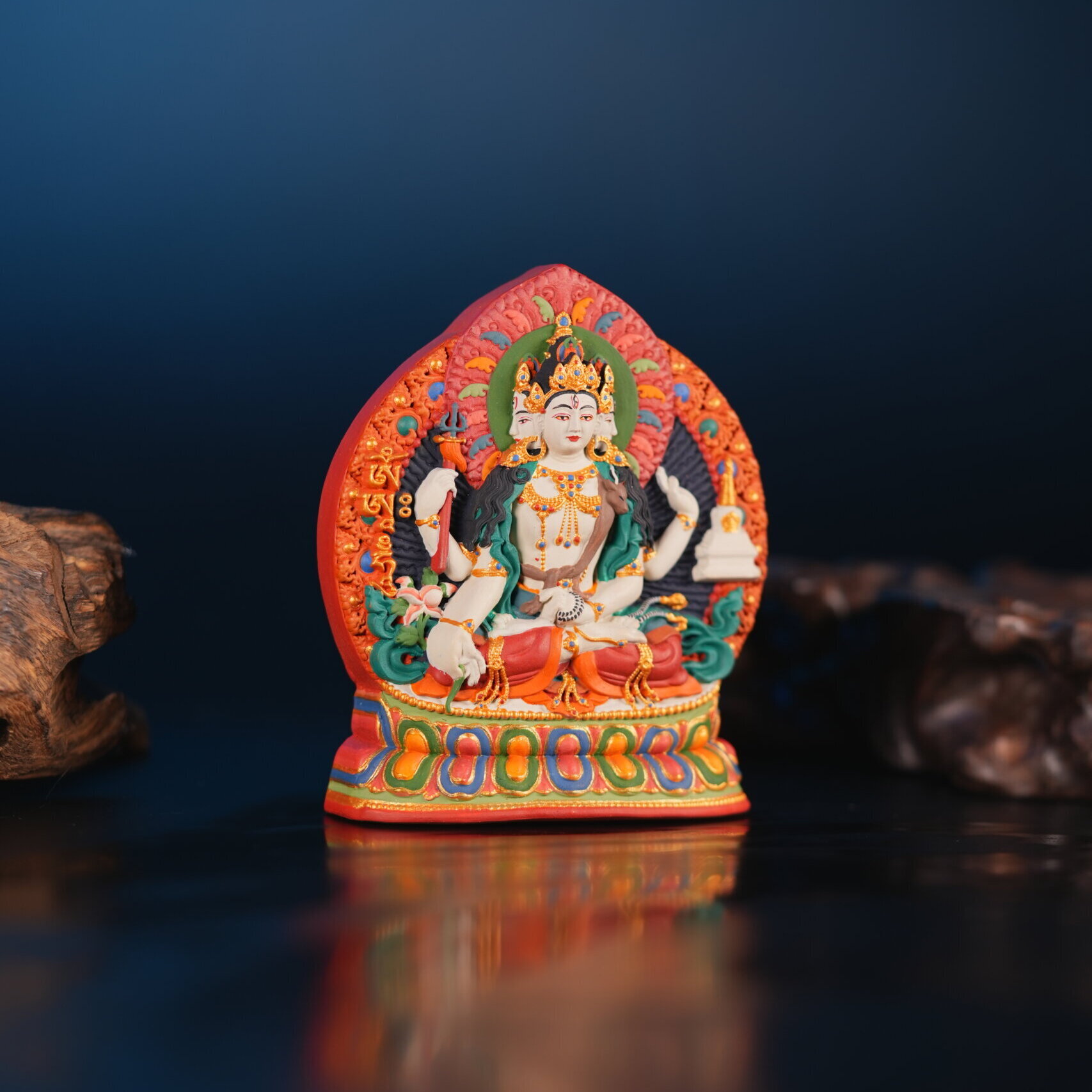This large votive Tsa-Tsa (10.3 cm) captures the serene strength of Amoghapāśa’s vow—a sacred reminder that compassion, when guided by wisdom, never fails to reach those in need.