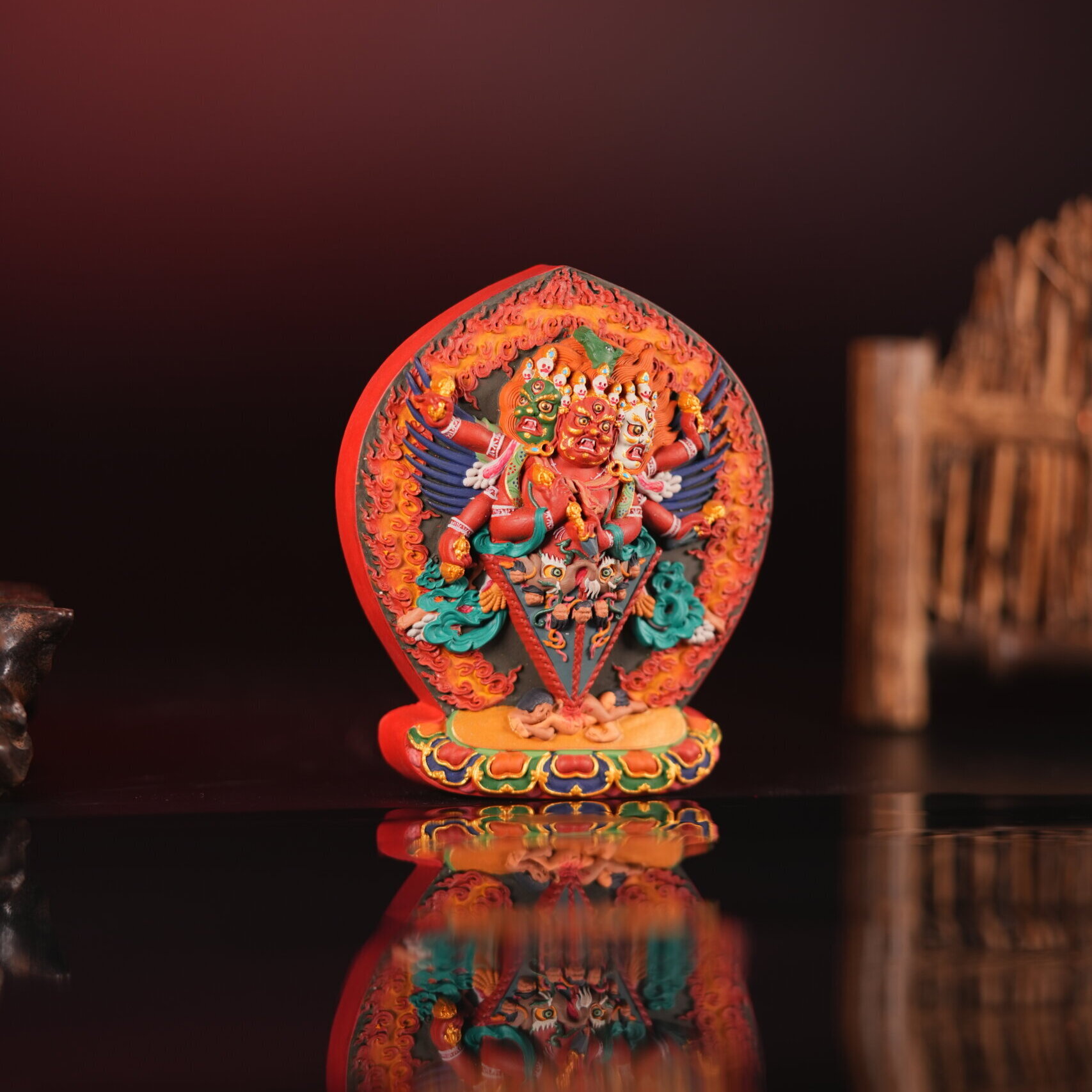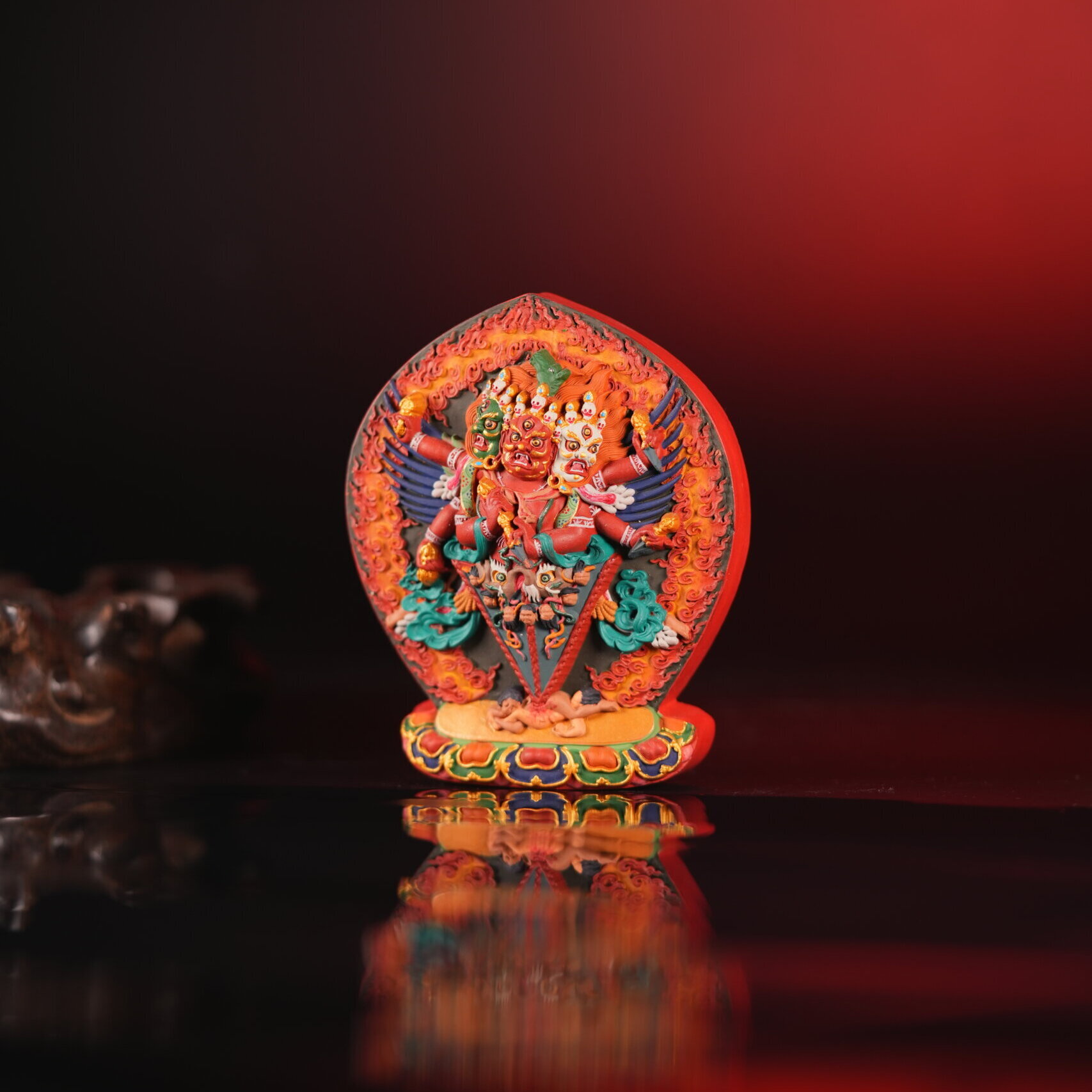 Revered in tantric lineages as a protector of practitioners and destroyer of demonic interference, this sacred image serves as a powerful spiritual armor. To venerate this Tsa-Tsa is to invoke the black flame of wisdom — fierce yet compassionate, purifying, protective, and utterly liberating.