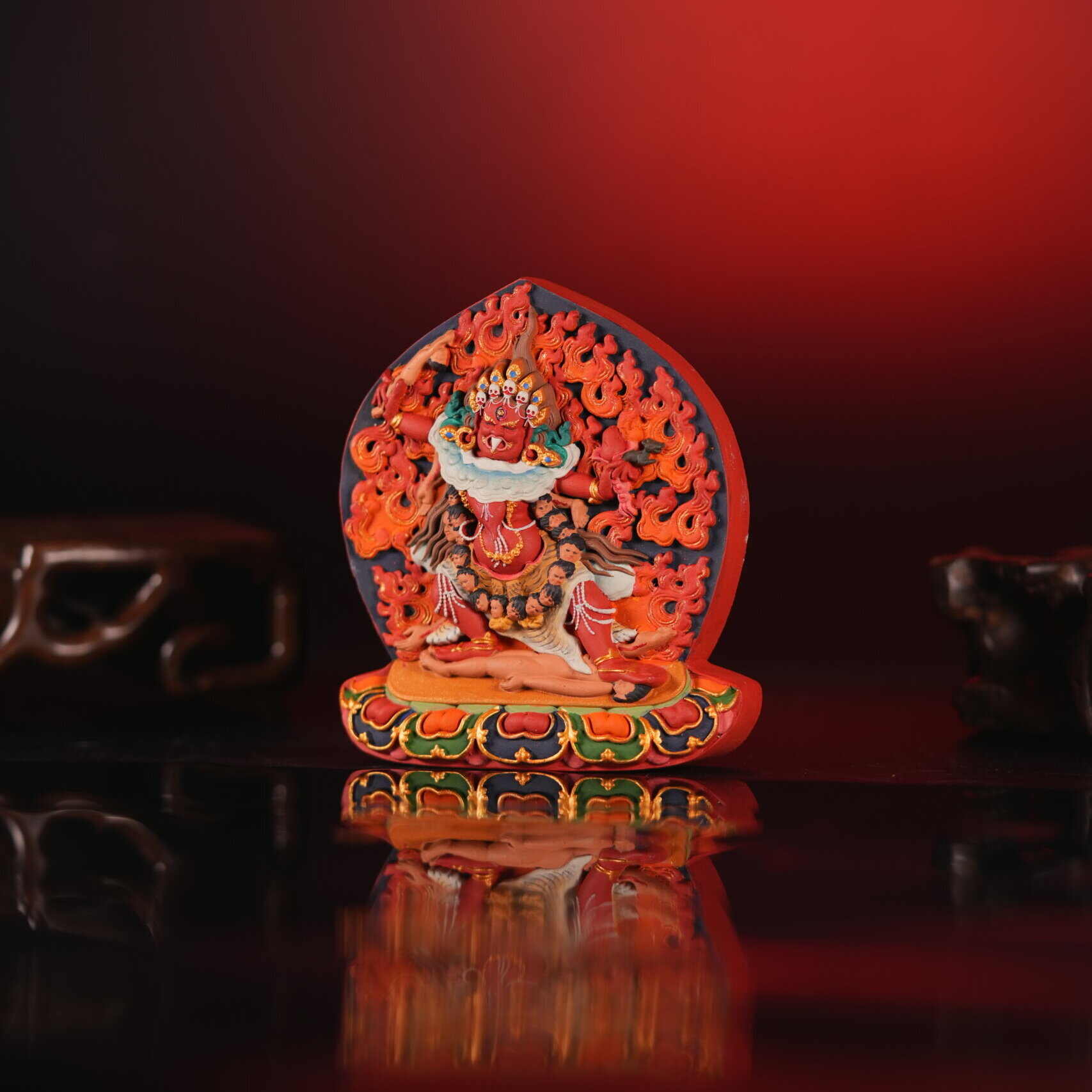 Ekajaṭī (One-Lock Figure) Large Votive Tsa-Tsa Tibetan-Style Art Piece Inspired by the Classical Ekajaṭī Iconographic Form • 10 cm Hand-Painted Mold-Formed Clay Artwork, High-Fired · Traditionally Crafted