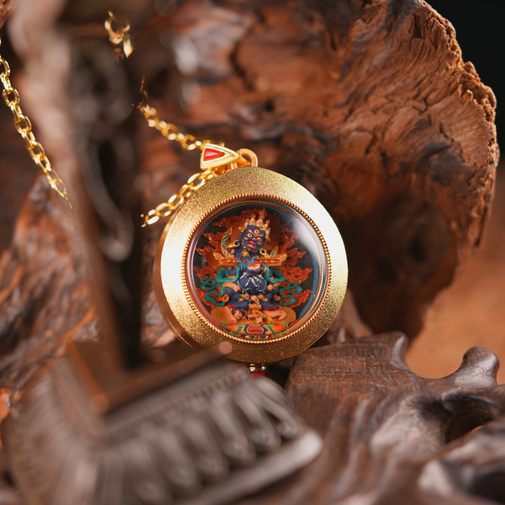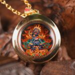 Gur Gyi Gonpo (“Lord of the Tent”) is revered as the supreme dharmapāla of the Sakya lineage, manifesting as the fierce wisdom form of Manjushri. His wrathful appearance is not anger, but enlightened compassion that destroys ignorance and obstacles. The curved flaying knife in his hand severs ego and delusion, while the skull-cup transforms negativity into nectar of wisdom. Enshrined in Sakya monasteries since the 11th century, Gur Gyi Gonpo has long been invoked by practitioners for protection, fearlessness, and spiritual clarity. Owning or venerating this tsa-tsa symbolizes steadfast guardianship on the path to liberation, making it a powerful spiritual centerpiece for shrines and meditation spaces.