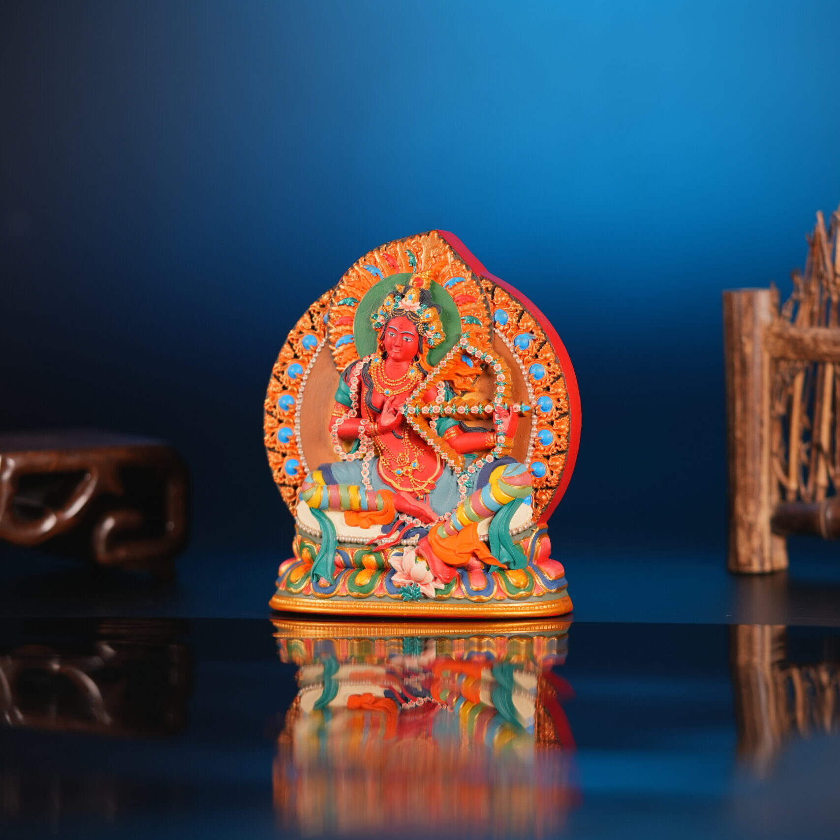 Her brilliant red form embodies the dynamic power of transformation. With bow and arrow made of lotus flowers, she magnetizes virtue and harmony, conquering negativity through beauty and awareness. Kurukullā’s mantra and presence awaken the inner strength of attraction—drawing all favorable conditions for spiritual and worldly accomplishment while dispelling obstacles born of confusion and fear.