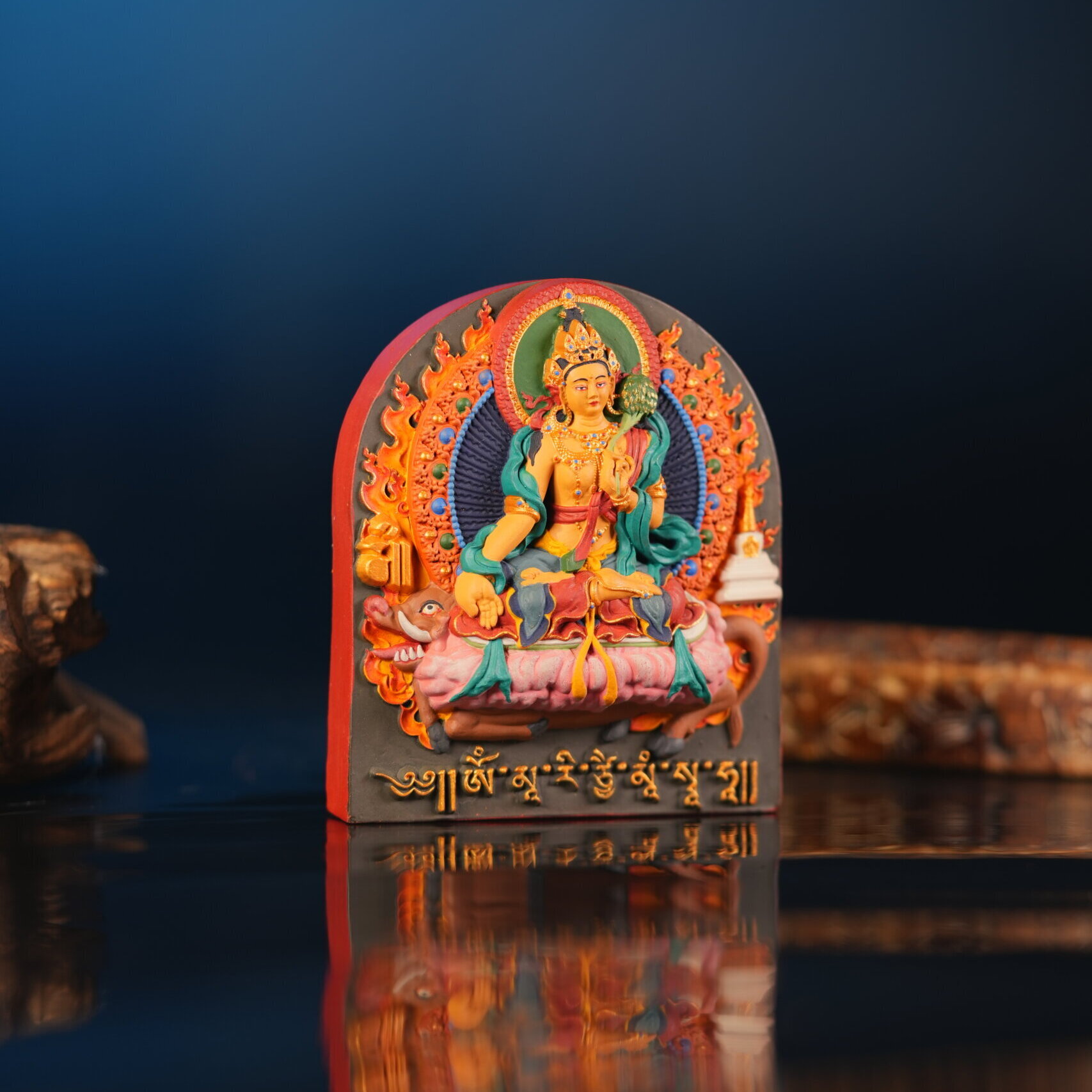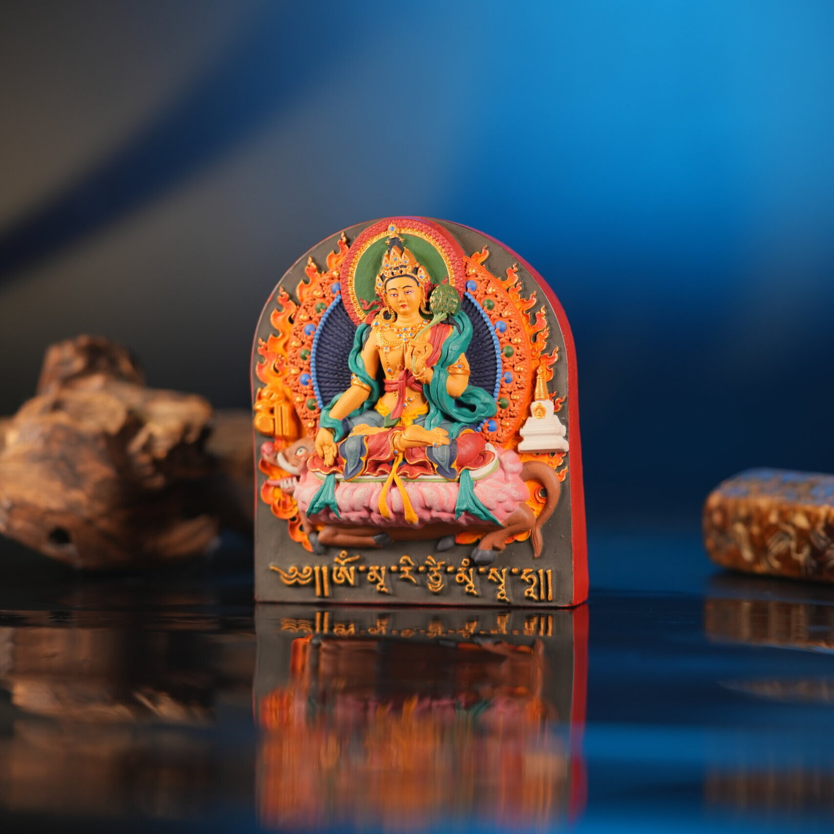 This 10.1 cm Large Votive Tsa-Tsa, master-blessed and ritually consecrated, preserves the sacred brilliance of Marici’s enlightened energy. To venerate this image is to invite the dawning light within one’s heart — a fearless wisdom that no shadow can obscure, illuminating the path of awareness and protection.