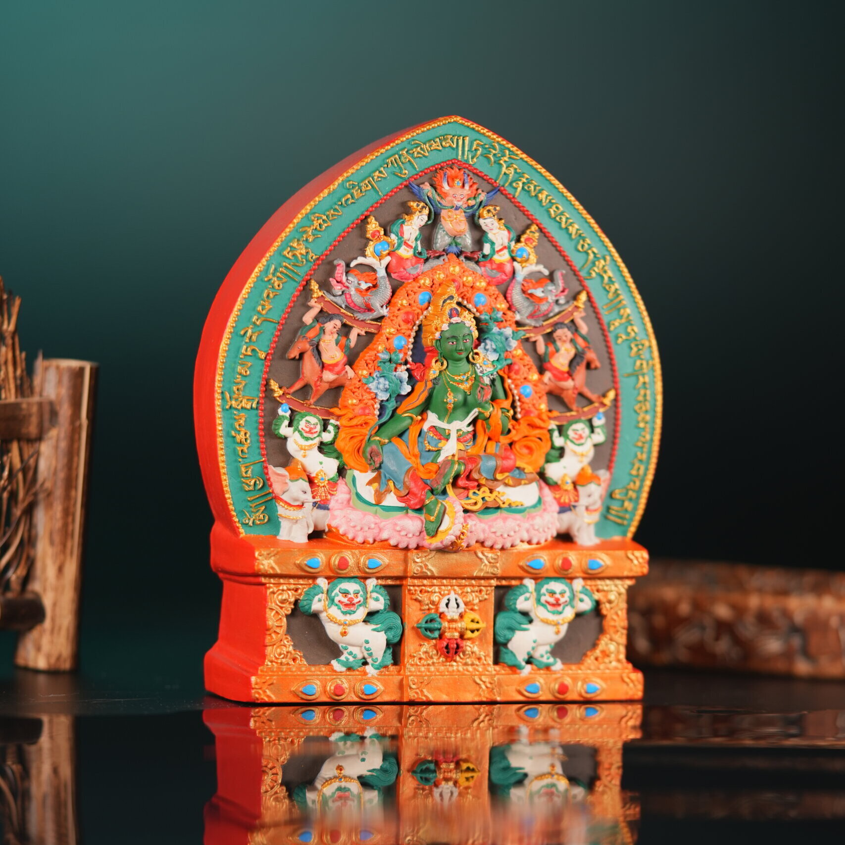 Sacred Six-Ornament Green Tara Large Votive Tsa-Tsa Sublime Form of Enlightened Compassion, Bestower of Prosperity, Peace, and Protection • 14.6 cm Ritual Power Manifestation • Master-Blessed