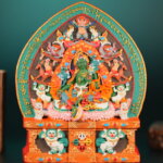 In this exalted six-ornament aspect, Ārya Tārā reveals her complete enlightened activity. She protects from fear, pacifies suffering, and transforms adversity into spiritual growth. The six ornaments symbolize the perfections of the awakened mind — generosity, discipline, patience, diligence, concentration, and wisdom — the six radiant qualities through which Tara liberates beings from samsara’s ocean of uncertainty.
