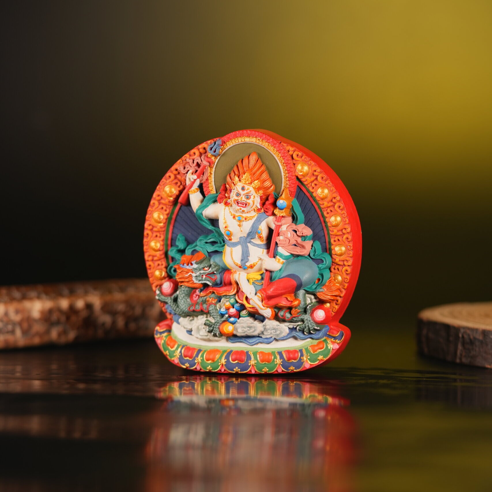 Unlike wrathful forms of wealth deities, White Jambhala radiates serene blessings that dissolve greed and transform attachment into generosity. His pure white form reflects clarity of intention and the virtue of selfless giving, guiding practitioners toward the harmonious balance between wealth and wisdom.