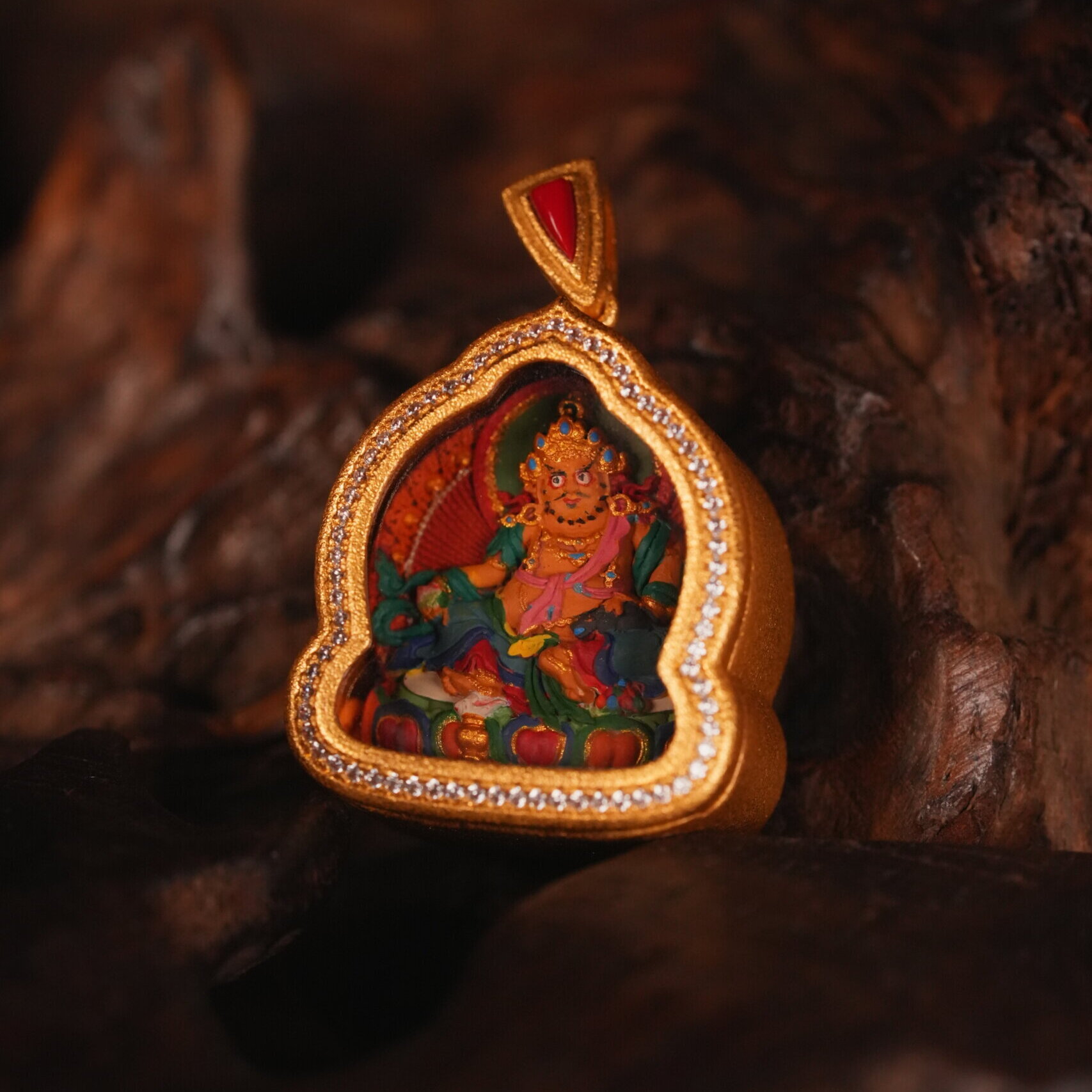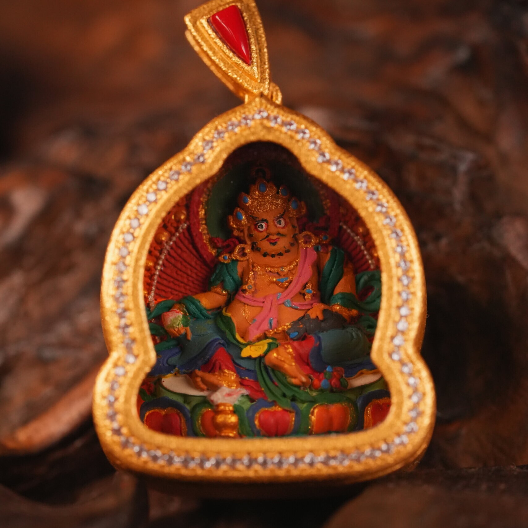 The Yellow Jambhala, known as Dzambhala Serpo, is the most revered among the Five Wealth Deities. Manifesting the compassion of Buddha Ratnasambhava, he embodies generosity and the power to eliminate poverty in all realms. His radiant golden form symbolizes the flourishing of virtue and material abundance alike.