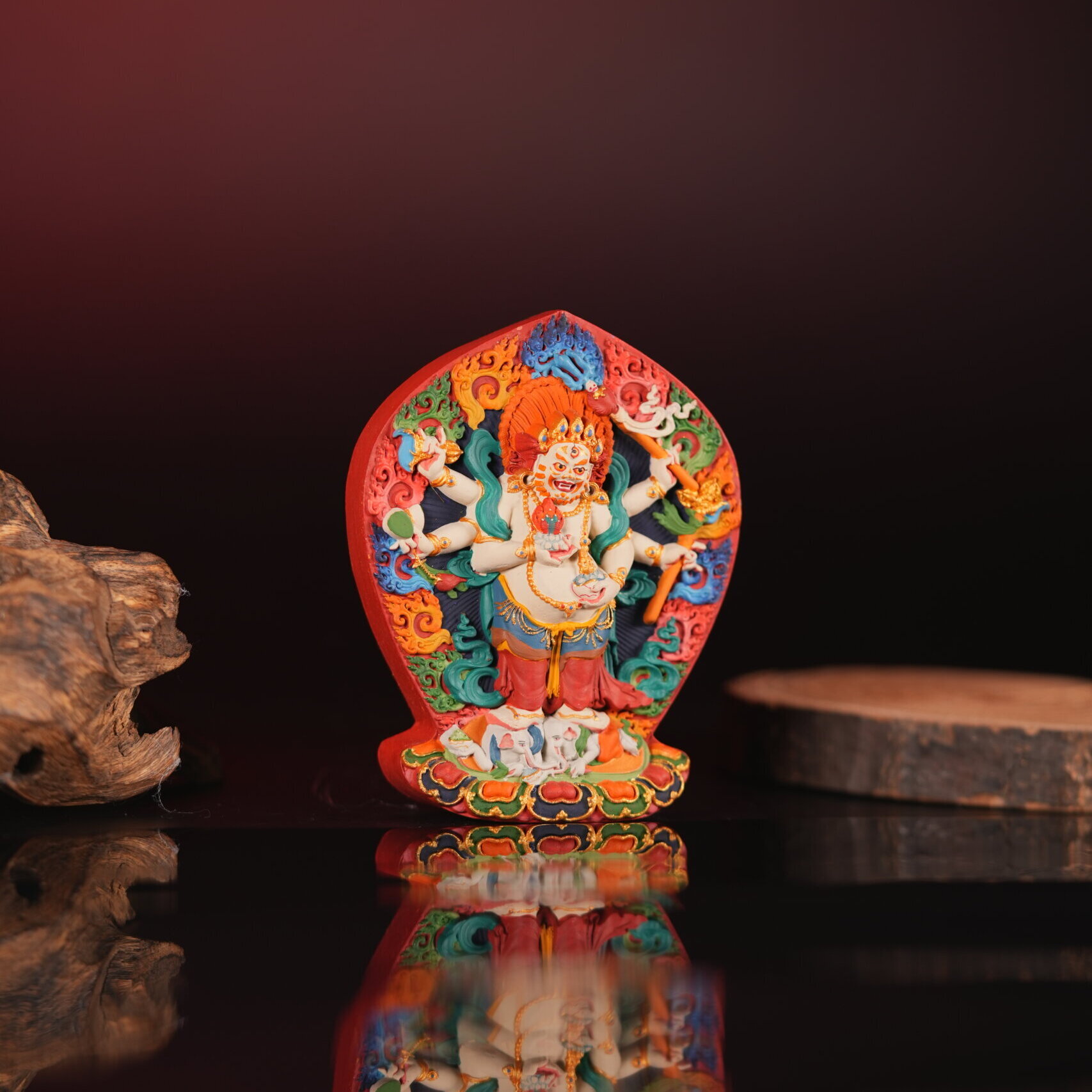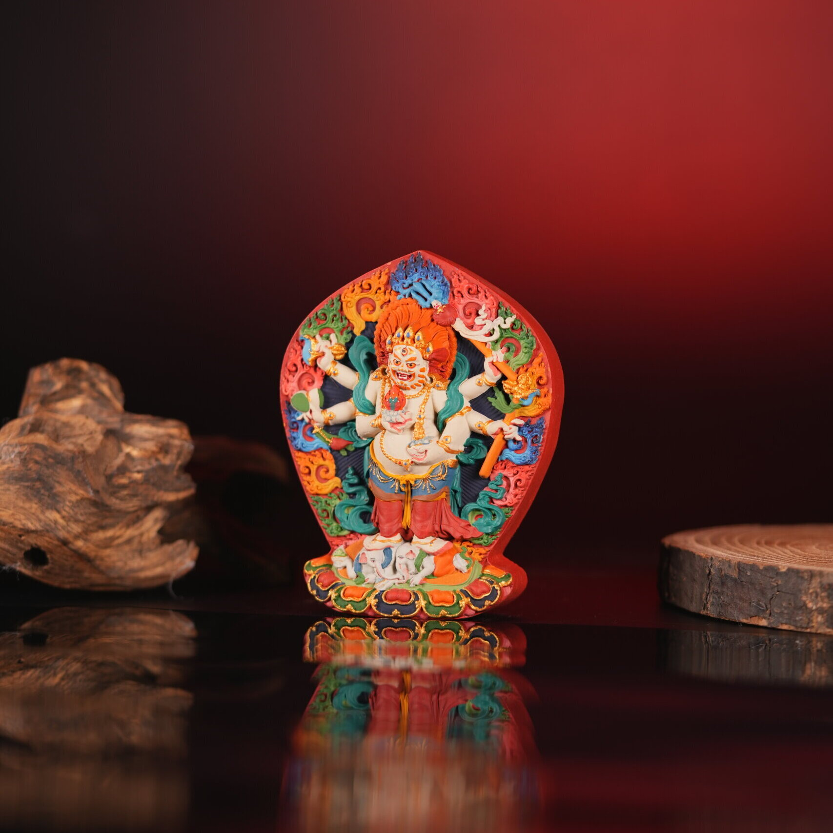 This 10.3 cm large votive Tsa-Tsa, hand-blessed and consecrated, captures the benevolent presence of White Gonpo. It serves as a sacred reminder that true prosperity arises from compassion, mindful action, and a heart aligned with wisdom—making it a powerful focus for shrines, homes, and meditation spaces.